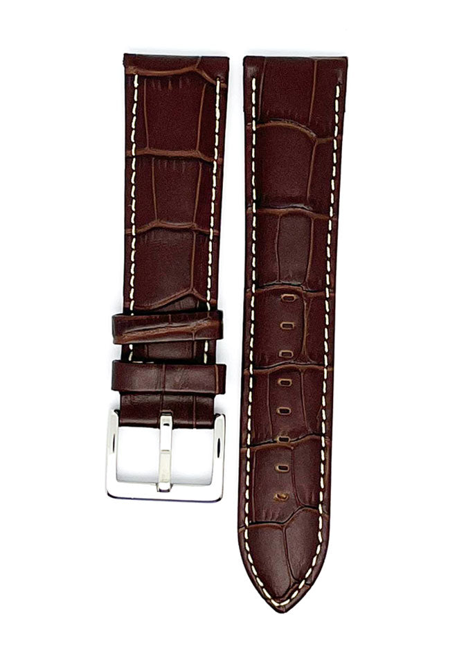 Bracelete em pele genuína italiana com padrão crocodilo, pesponto branco e fivela em aço. Clássica e elegante (75x22mm / 120x22mm)