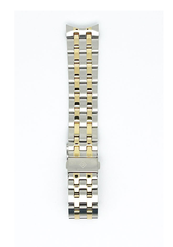 Bracelete em aço inoxidável bicolor gold (316L), fecho báscula de botão de pressão. Design moderno e elegante (190x22mm)