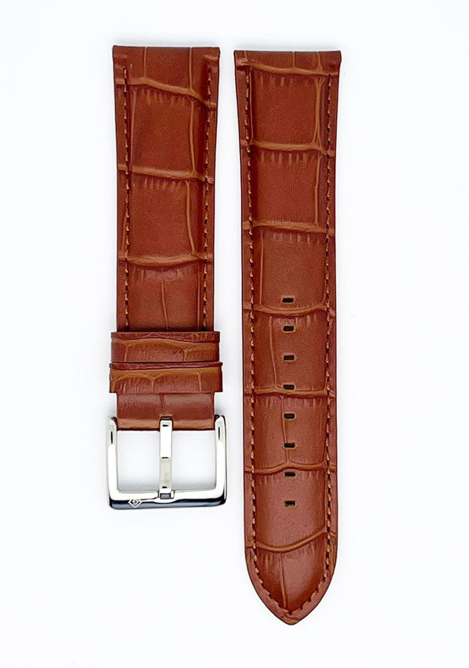 Bracelete em pele genuína italiana com padrão crocodilo, pesponto ao tom e fivela em aço. Clássica e elegante (80x22mm / 120x22mm)