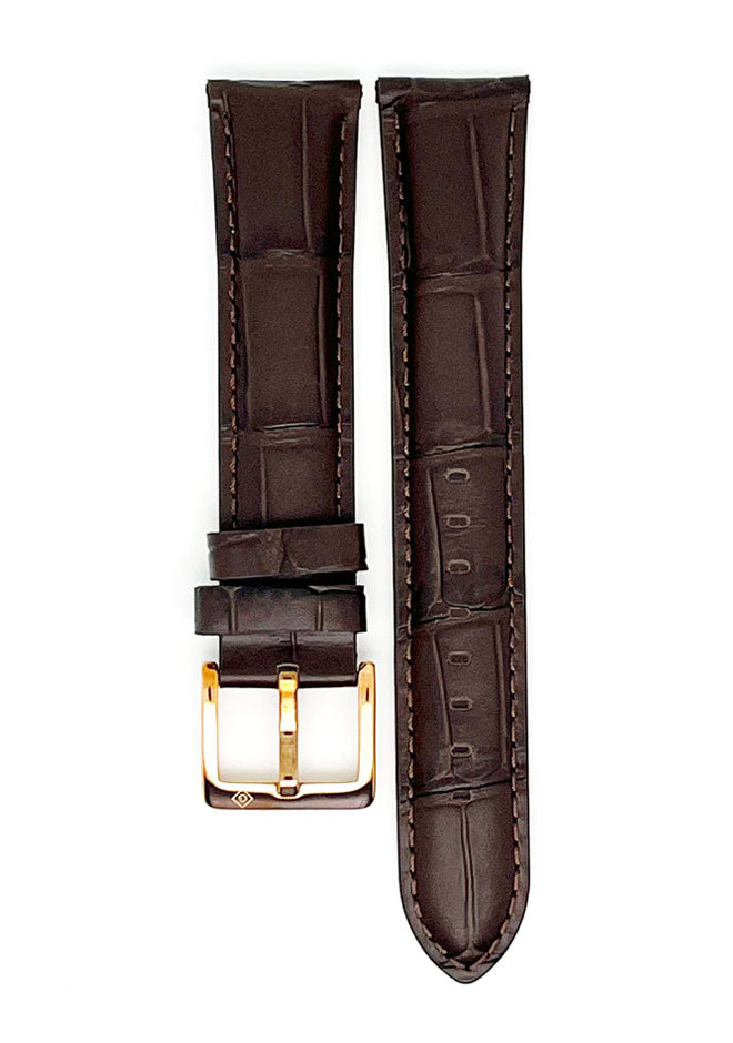 Bracelete em pele genuína italiana com padrão crocodilo, pesponto ao tom e fivela em aço ip-rose gold. Clássica e elegante (80x20mm / 120x20mm)